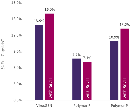 See how TransIT-VirusGEN® + RevIT™ compare against other transfection reagents in both titer and percent full capsids.