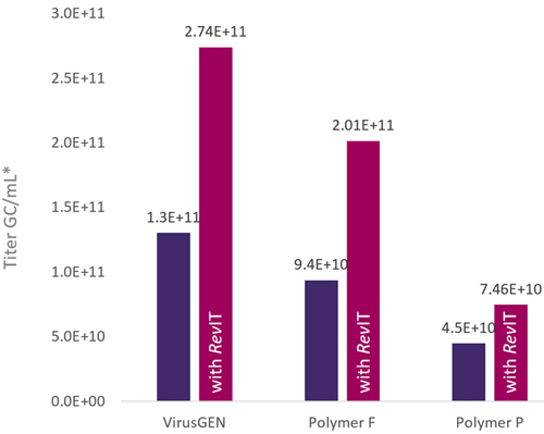Increase your AAV titer up to 4X with RevIT™ AAV Enhancer. RevIT is compatible with multiple serotypes, media, and HEK cell lines, making it an easy and effective addition to your workflow. By incorporating RevIT into your process, you can achieve significantly higher yields with minimal effort.