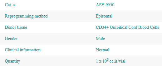 - Favorable development profile—reprogrammed from CD34+ cord blood cells for reduced immunogenicity and fewer somatic mutations compared to reprogrammed adult cells
