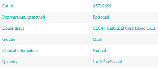 - Favorable development profile—reprogrammed from CD34+ cord blood cells for reduced immunogenicity and fewer somatic mutations compared to reprogrammed adult cells