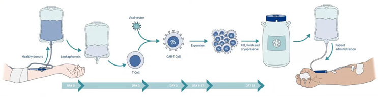 Until now, the use of autologous T cells to manufacture CAR products has become the norm, however, recent evidence has demonstrated T-cell dysfunction in some cancer patients, which impairs the effectiveness of the end CAR-T product. Nonetheless, the use of allogeneic CAR-T cells from donors has many potential advantages over autologous approaches.