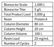 As an example, let’s look at a generic hypothetical chromatography unit operation using the following numbers in Table 1: