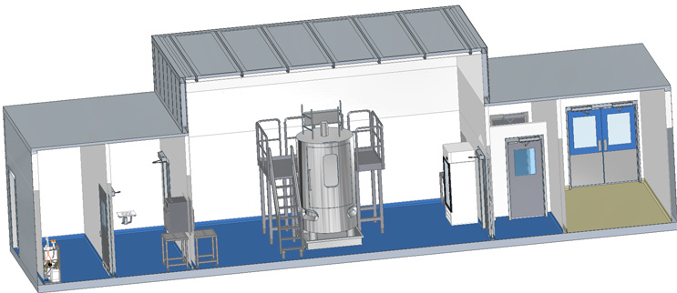 Germfree cGMP modular cleanroom facilities are a genuine turnkey platform solution that enable both cGMP and cGMP/BSL-2 production. All systems necessary to operate the facility are fully integrated. Germfree facilities are free standing, do not require a shell building and provide a high quality interior working environment. Germfree Modular facilities are designed with room and facility features such as Grade D (ISO 8), Grade C (ISO 7), Grade B (ISO 5), Material Air Locks (MALs), Personnel Airlocks (PALs), Anterooms, and Degowning rooms in a layout most efficient for your process flow.