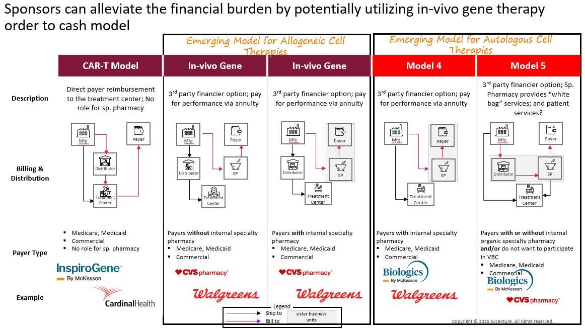 - HCP Pay Model: Common in CAR-T today, this positions third-party providers as subcontractors to treatment centers, leaving reimbursement in the center’s hands but limiting sponsor visibility.