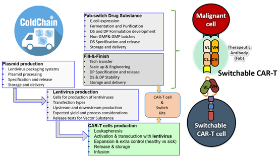 Figure 2: Distributed Manufacturing Workflow for Switchable CAR-T Cell Therapy Across Five CDMOs
