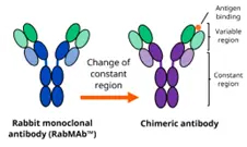 Chimeric antibodies combine the binding regions (variable domain) from the parent rabbit recombinant monoclonal antibody with the constant region from a different species. This innovative approach preserves the high performance and binding properties of the original recombinant monoclonal antibody while introducing a diverse range of species backbones, including mouse (IgG1, IgG2a), rat (IgG2a), chicken (IgY), and goat (IgG).