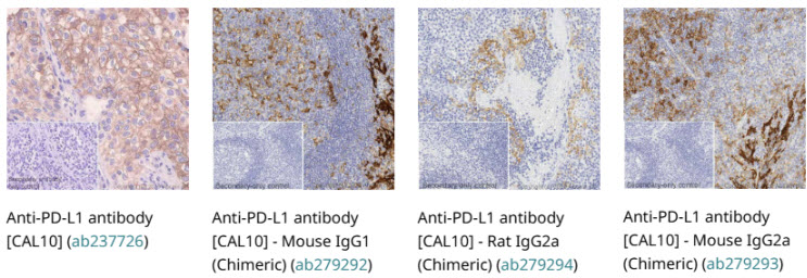 These chimeric antibodies have the same clone number as the parent rabbit antibody and can be identified by the word “chimeric” in the product name. The table below displays a selection of just some of our chimeric antibodies.