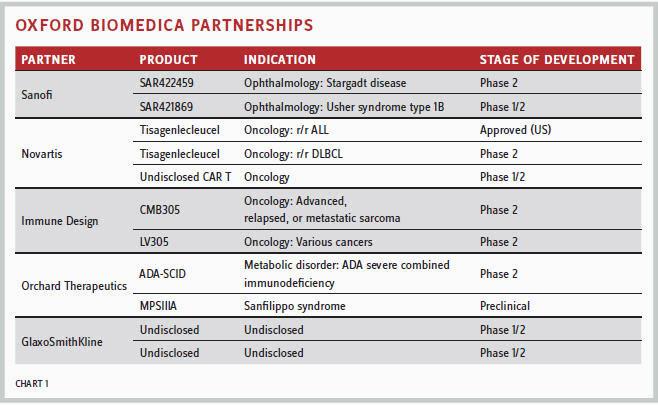 The October 2014 deal also included an exclusive license for the worldwide development and commercialization of all CAR-T cell products arising from the process development collaboration. Oxford BioMedica will receive undisclosed royalties on potential future sales of all Novartis CAR-T products, including tisagenlecleucel.