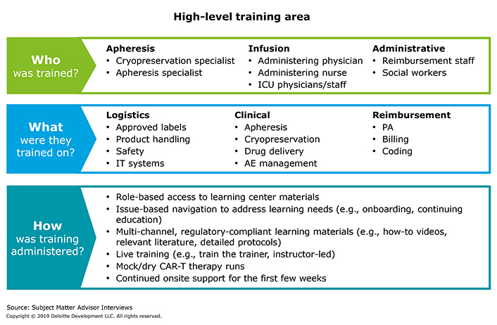 Providers want training and certification processes to be simple and, where applicable, to allow sites to follow institutional policies to minimize change management. Stakeholders also desire turnkey educational materials (e.g., video training models for apheresis, administration, adverse event management).