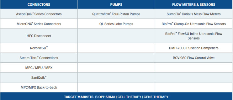 CPC Biotech’s integrated portfolio spans three core categories, enabling customers to connect, move and measure critical biopharmaceutical fluids with one expert partner: