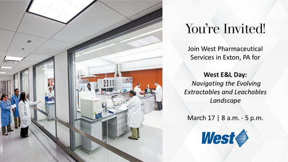 Join West Pharmaceutical Services on March 17th for West E&L Day: Navigating the Evolving Extractables and Leachables Landscape. Attendees will explore evolving E&L requirements through expert-led sessions, guideline updates, a panel discussion, and optional lab tours. Register here.