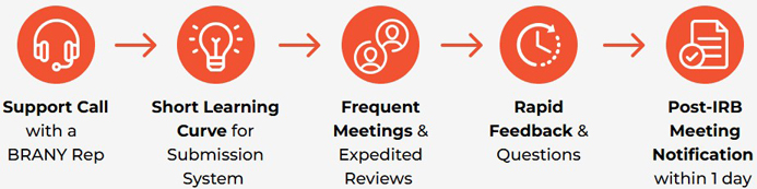 BRANY IRB screens new submissions rapidly and communicates feedback and questions in advance of IRB meetings. We’ll keep you updated every step of the way.