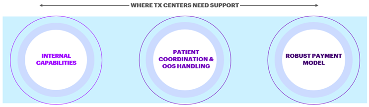 To administer cell and gene therapies at scale, treatment centers (Tx) must have defined processes and capabilities in place. Nearly half of the respondents said their treatment center is preparing for increasing patient volume, while the other half said they do not currently have plans for expansion. With plans for expansion not quite underway yet, the industry needs to consider the support these Tx centers will need and how it can offer it. The biggest capability and infrastructure related challenges that HCPs mentioned were (1) patient sample management capacity such as apheresis capacity and (2) talent and requisite expertise constraints. It is known that the healthcare industry is generally constrained in both staff and space, treatment centers are concerned that they do not have the resources and dedicated space to administer these complex therapies. Additionally, the type of cell and gene therapy being administered determines the required Tx center capabilities. For example, if a cell and gene therapy is administered intravenously, typically the nurses and physicians on site are responsible for administering the treatment. Alternatively, therapies that are administered surgically and have a limited cell viability window require a different set of capabilities and processes.