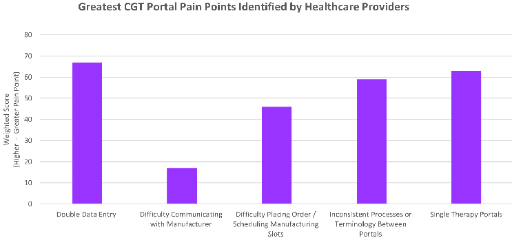 Based on the survey conducted among health care practitioners within the cell and gene space, a list of the most common pain points among cell therapy portals were identified (Figure 1) with a key trend among them.
