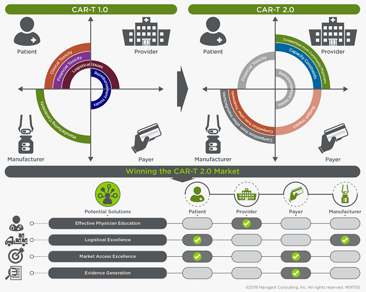 Innovators bringing the next generation of CAR-T therapies to market should give heed to and prepare to navigate the challenges identified above. Current and future players must recognize and execute against two key strategic imperatives: 1) optimizing the 360-degree stakeholder experience, and 2) demonstrating clear value through evidence generation. Preemptively addressing these likely future obstacles and opportunities early in the market development process will position CAR-T players well for CAR-T 2.0.