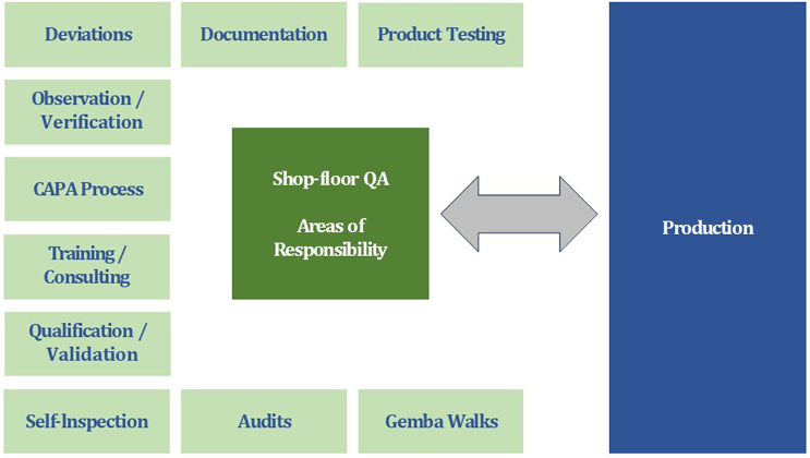 Figure 1 shows an overview of the possible areas of responsibility of a shop floor QA organization. The individual aspects are presented below under the assumption that QA is fully involved in the working shifts.