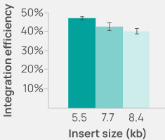 Figure 2. Raw integration efficiency (no drug selection) into HEK293 cells remains high as insert size increases from 5.5 to 8.4 kb.